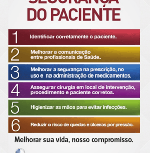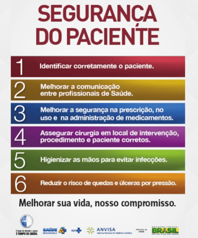 Dentre as metas estabelecidas, destacamos a importância de identificar corretamente o paciente, melhorar a eficácia da comunicação, garantir a segurança dos medicamentos de alta-vigilância, assegurar cirurgias com local de intervenção correto, procedimento correto e paciente correto, reduzir o risco de infecções associadas a cuidados de saúde e reduzir o risco de danos aos paciente decorrente de quedas.
